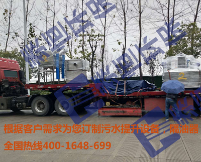 餐飲類廢水的處理找泰恒環保,無臭氣散發。多級油水分離處理新工藝。解決廢水中污泥處理的難題。2018年12月22日發無錫新區商場需要購買2套分體隔油設備,下面是泰恒環保發貨場景: